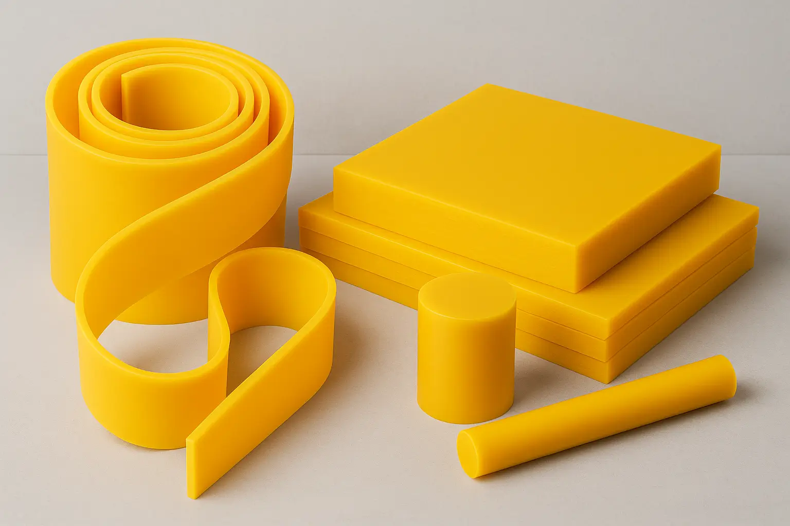 ورق و میلگرد پلییورتان با خاصیت انعطافپذیری و مقاومت سایشی بالا، در صنایع لاستیکسازی، قالبگیری و ضربهگیرهای صنعتی بهکار میرود.